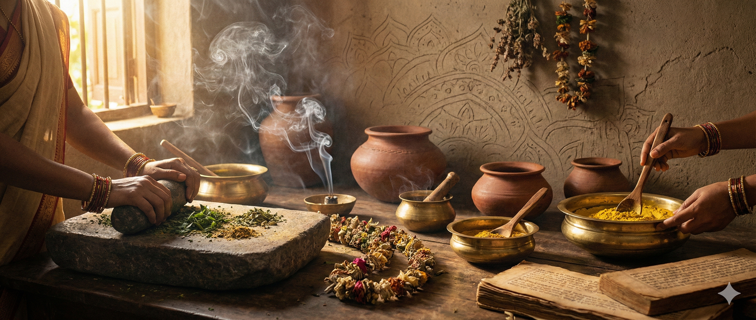 From the first grain of rice to the final swirl of rose water, every Klīṃara product is made through conscious craftsmanship. Our team follows ancient Ayurvedic manuscripts blended with modern research — to ensure every drop holds balance, safety, and healing energy.