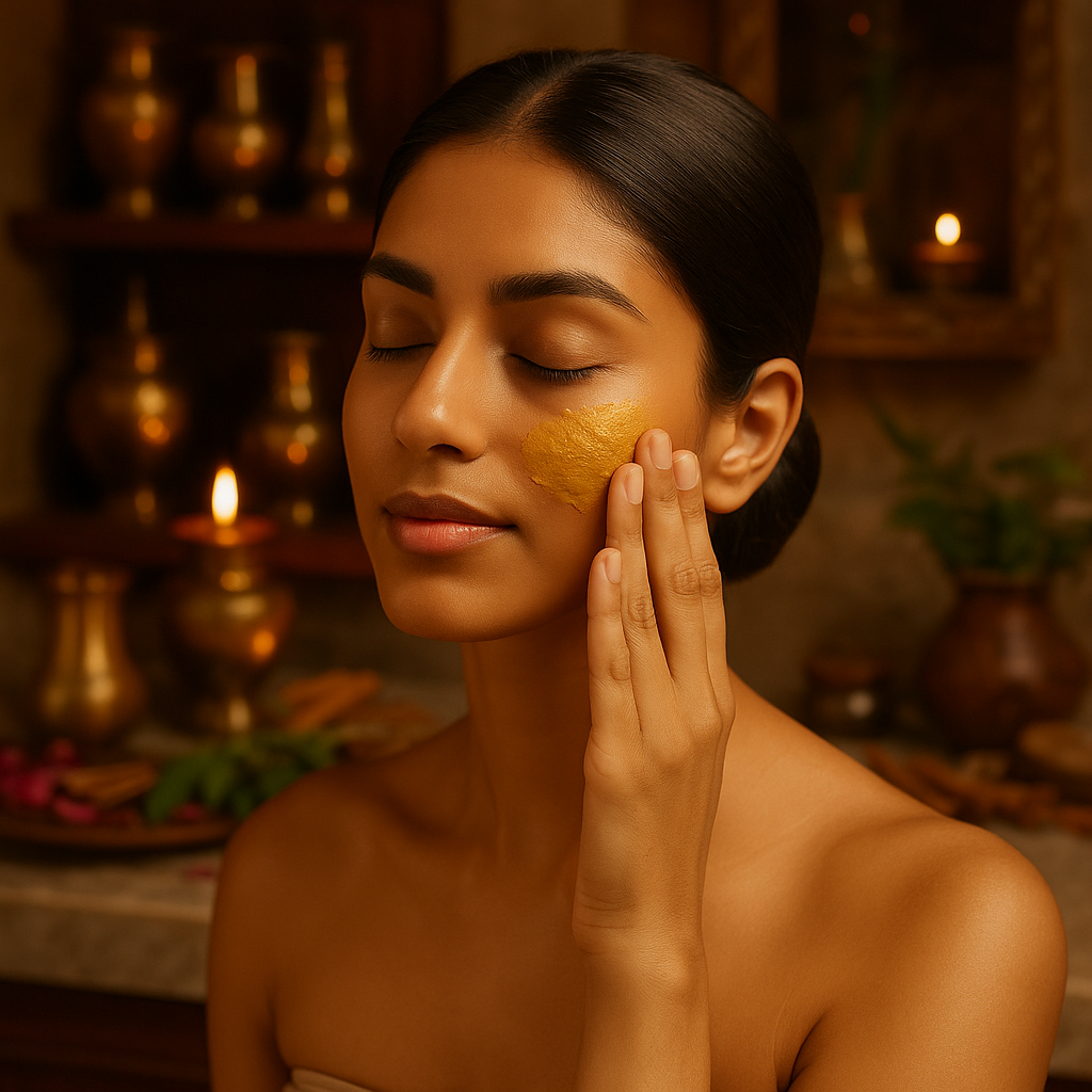 Crafted with pure Ayurvedic botanicals to brighten, soften, and restore balance.